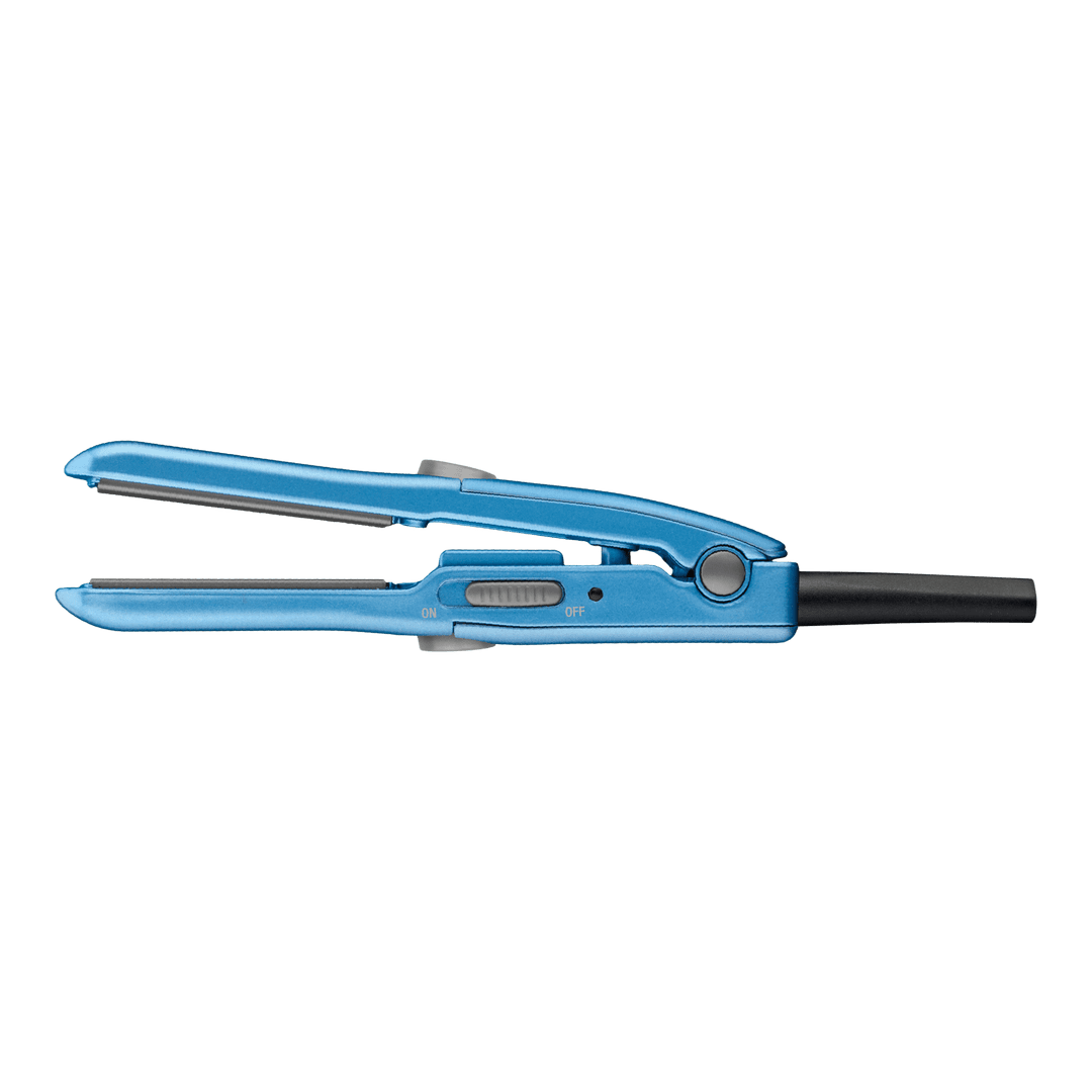 La mini plancha alisadora BaBylissPRO con bolsa de viaje presenta un poder alisador de nano titanio en una mini plancha alisadora fácil de transportar con 1/2 ”.