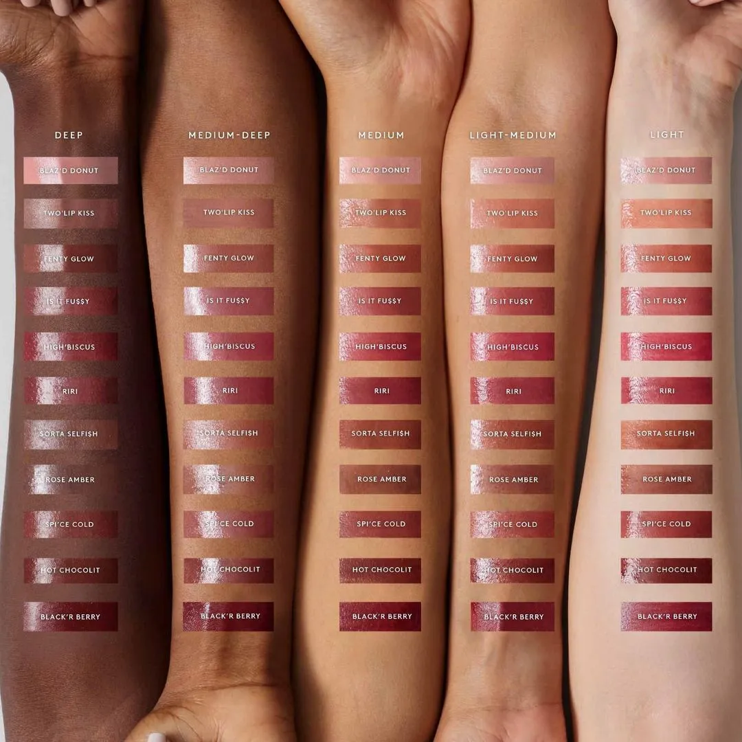 | Tono | Blaz'd Donut, Two'lip Kiss, Fenty Glow, Is It Fu$$Y, High'biscus, Riri, Sorta $elfish, Sp'ice Cold, Hot Chocolit, The MVP, rose amber |