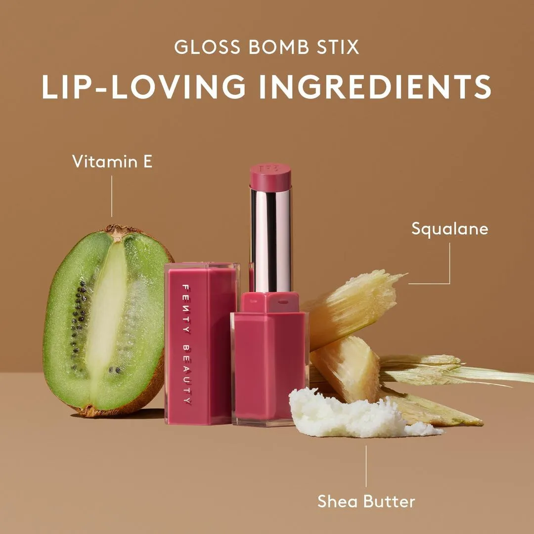 FENTY BEAUTY by Rihanna Gloss Bomb Stix High-Shine Gloss Stick: obtén un brillo delicioso con este lápiz labial brillante de pigmento medio que está cargado con vitamina E y manteca de karité, además de escualano para retener la humedad hasta por 8 horas.