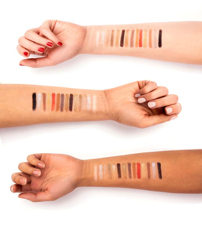 Una paleta de sombras de ojos de 14 colores con una mezcla de matices mate y metálicos en tonos nude, dorado y bronce.