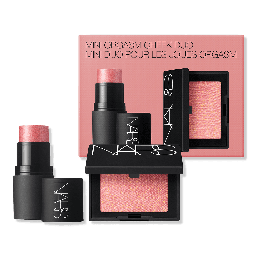 El Mini Orgasm Cheek Duo de NARS es un set de edición limitada que incluye un Mini Blush y un Mini Multiple en el icónico tono Orgasm.