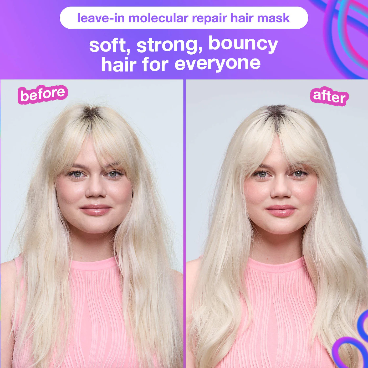 La mascarilla capilar reparadora molecular sin enjuague, la más vendida, repara el daño causado por la decoloración, el color, los productos químicos y el calor en tan solo cuatro minutos para un cabello fuerte, suave, liso y con cuerpo. El spray reparador de volumen AstroLift™ revierte el daño que reduce el volumen, ofreciendo dos días de volumen y cuerpo palpables. Su fórmula ligera y modulable levanta sin esfuerzo todo tipo de cabello, especialmente el fino, frágil, envejecido y propenso al quiebre, sin dejar una sensación pegajosa, crujiente ni apelmazada.