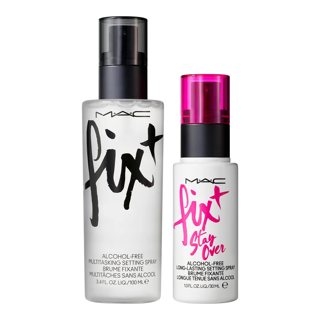 Stay Put Fix+ Duo es un dúo de regalo exclusivo para las fiestas que incluye el exitoso Fix+ de tamaño completo y el exitoso Fix+ Stay Over de tamaño mini a un precio M·A·Cnificent.