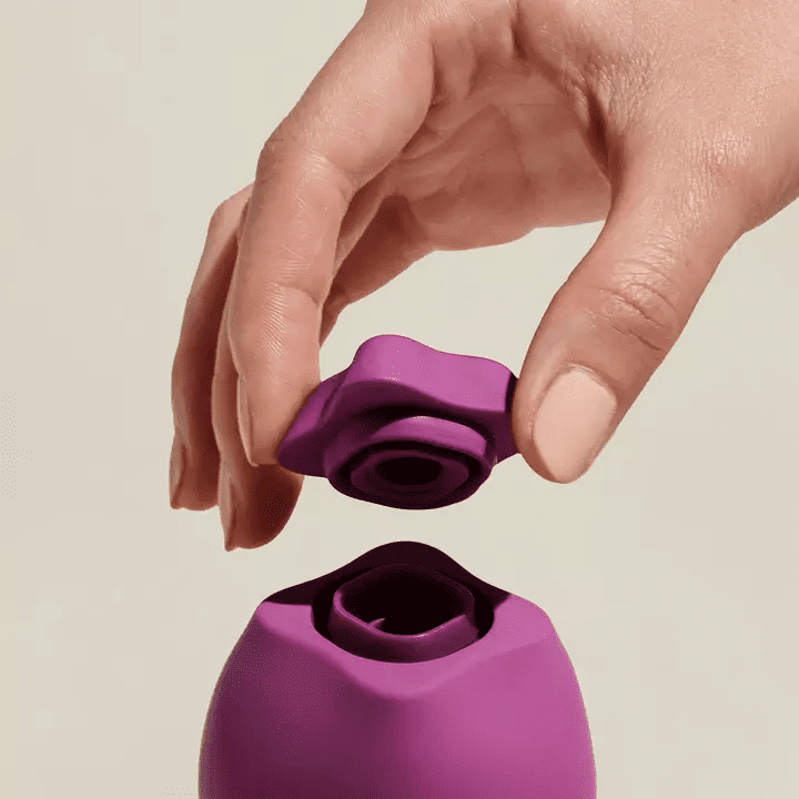 - Vibrador de succión diseñado ergonómicamente para un ajuste cómodo en la mano.