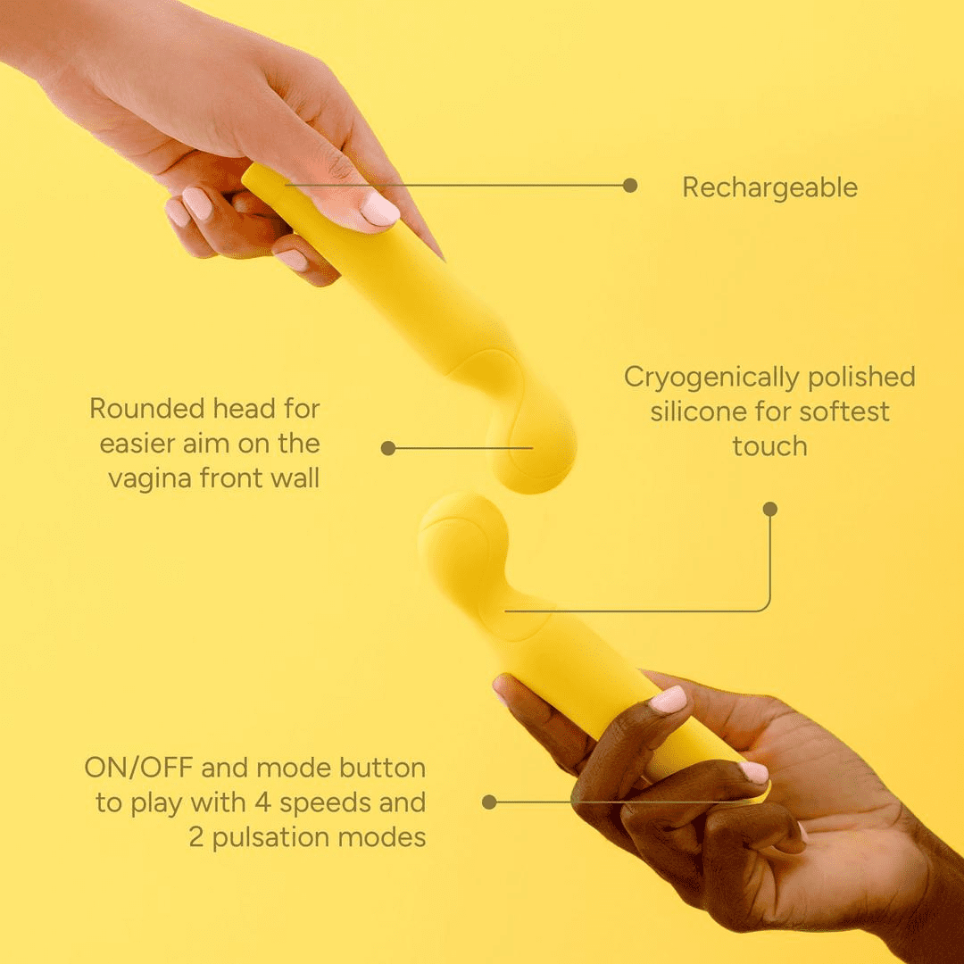 • Un cabezal redondeado y angulado para un masaje específico en la zona erógena