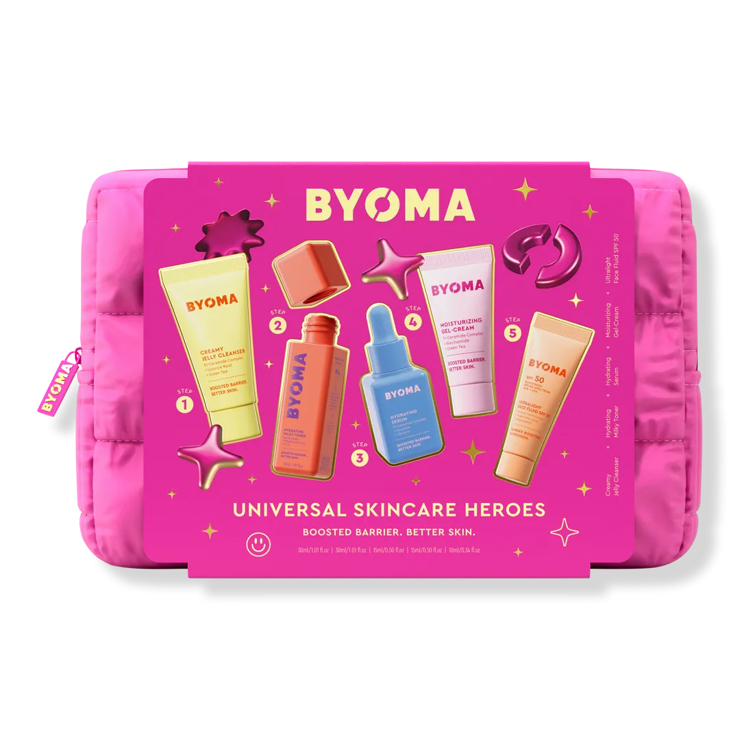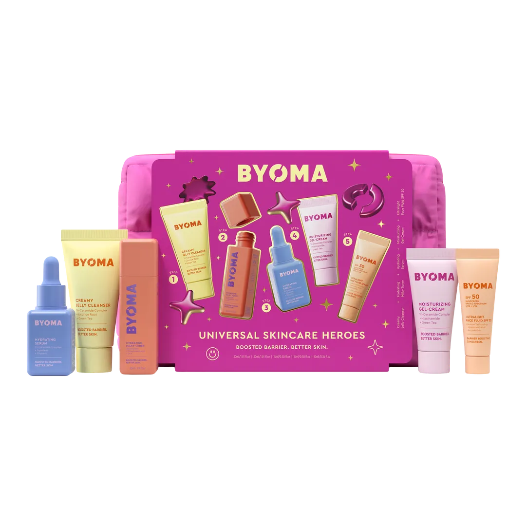 Conoce los Héroes Universales del Cuidado de la Piel de BYOMA, aprobados por dermatólogos y formulados con COMPLEJO TRI-CERAMIDA para una piel hidratada y radiante. Esta rutina de 5 pasos es la base para una piel radiante: incluye limpiador, tónico, sérum, crema hidratante y FPS para hidratar, proteger y reforzar la función de barrera cutánea.