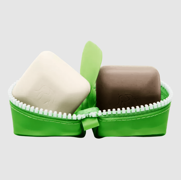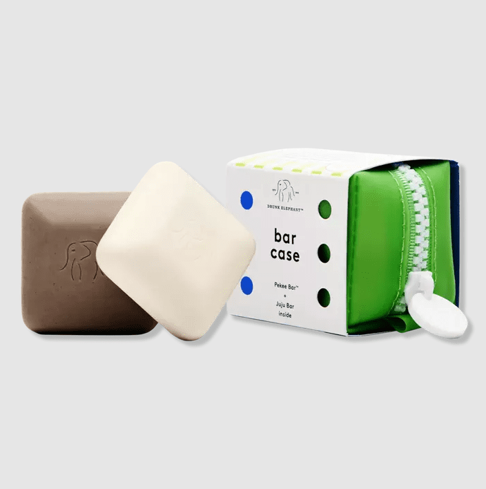Las barras Baby Bar Travel Duo de Drunk Elephant cuentan con dos barras innovadoras sin fragancia que se comportan como limpiadores líquidos suaves en la piel, sin dejar residuos. Tiene bares, viajará.