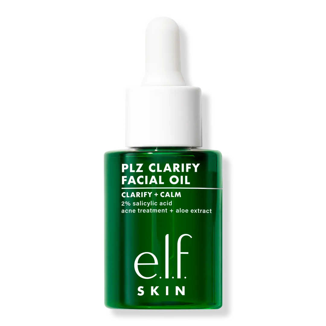 El Aceite Facial PLZ Clarify de elf SKIN es calmante, no comedogénico y está elaborado con un 2 % de BHA (ácido salicílico) para ayudar a tratar y prevenir la aparición de puntos negros, a la vez que aclara los poros obstruidos para una tez radiante y uniforme. Este aceite facial ligero y no reseca la piel se absorbe rápidamente.