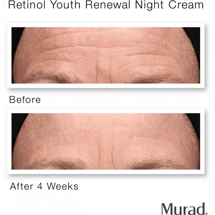 Murad Retinol Youth Renewal Night Cream nutre mientras mejora visiblemente la firmeza, minimiza las líneas y arrugas profundas, unifica el tono e hidrata.