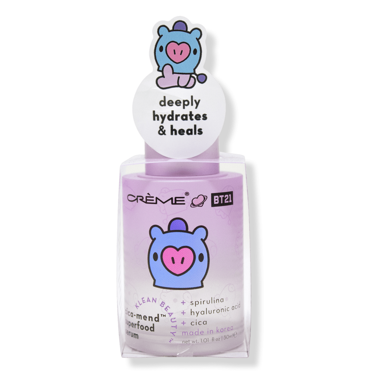 BT21 BABY MANG Cica-Mend Superfood Serum – Klean Beauty es un lujoso suero superalimentario elaborado por The Crème Shop con BT21 BABY para ayudar a calmar y sanar.